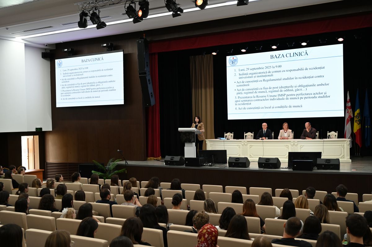 Prorectorul pentru managementul activității clinice, conferențiarul universitar Marcel Abraș, i-a asigurat pe medicii rezidenți că sunt așteptați în spitale, dorindu-le să se identifice în cadrul echipelor de gardă, să realizeze volumul de asistență medicală prevăzut în conformitate cu curricula fiecărei specialități, pentru că doar așa vor putea deveni specialiști foarte buni. „Astăzi începeți studiile în rezidențiat într-o Moldovă aproape europeană și, sper, să le finalizați când Moldova va fi integrată în Uniunea Europeană, unde veți avea dreptul de liberă practică oriunde, iar pentru asta trebuie să aveți cunoștințe teoretice și abilități practice foarte bune. Noi, cei care suntem parte a bazelor clinice, vă vom transmite tot ceea ce cunoaștem mai bine și vă rog să vă integrați activ”.